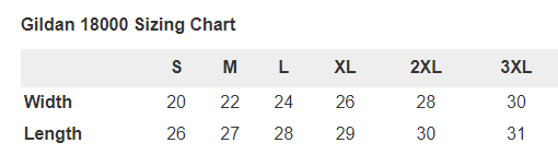 Materials: Gildan 18000 Heavy Blend (Screen Printed)
