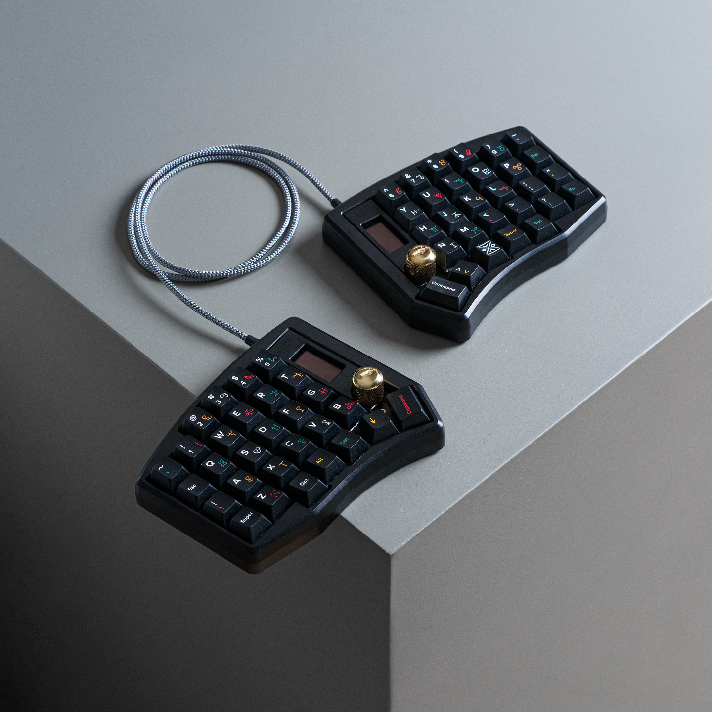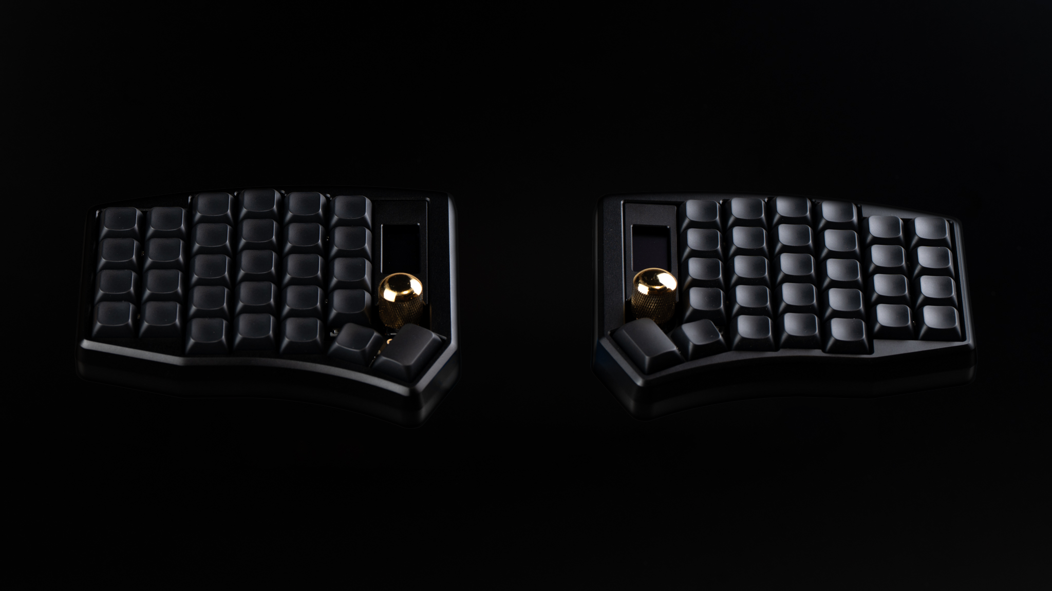 - Hotswappable large OLED screen (wired version) or optional nice!view (wireless)