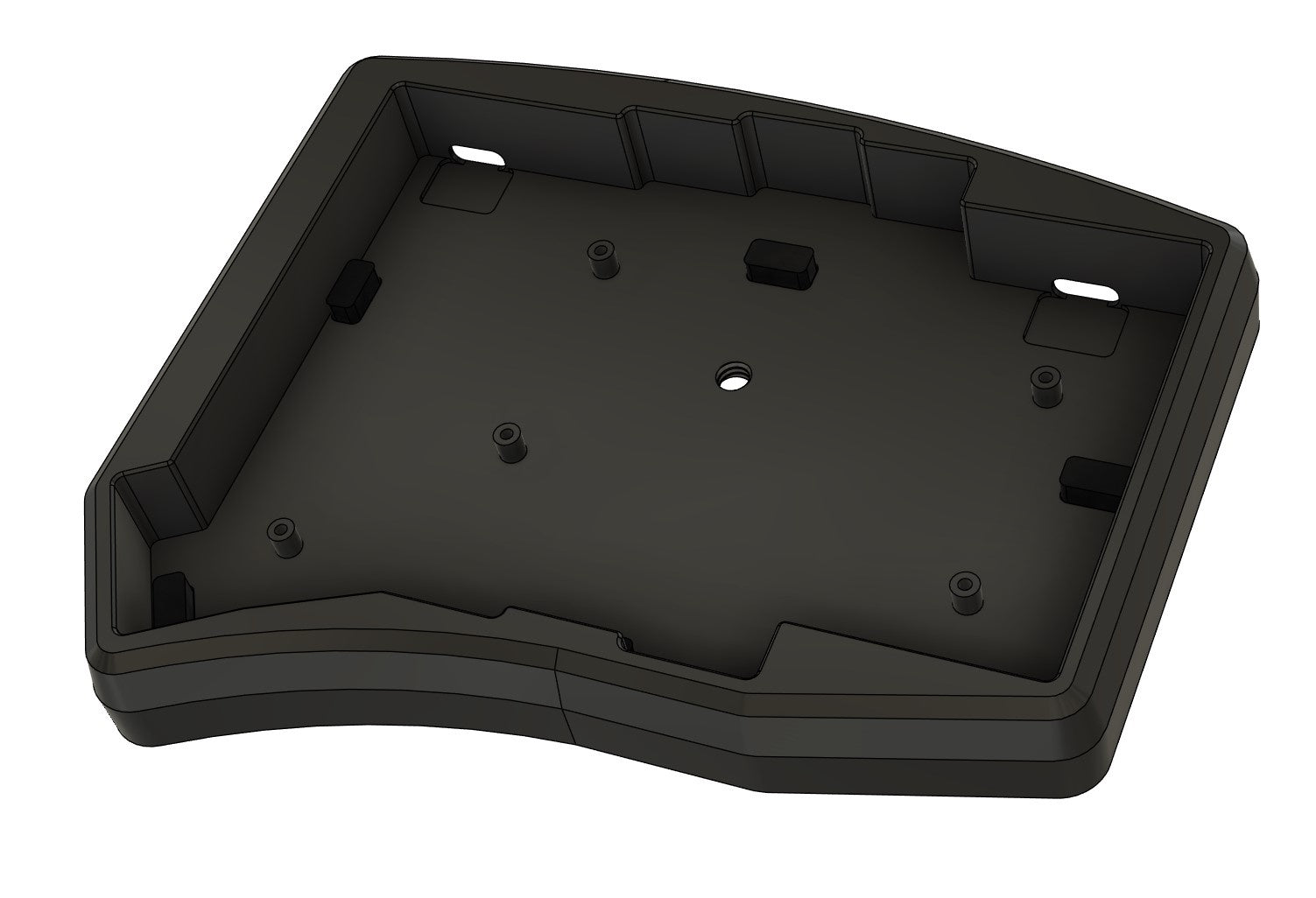 Gaskets are mounted inside the tray case, which align with various points on the PCB.