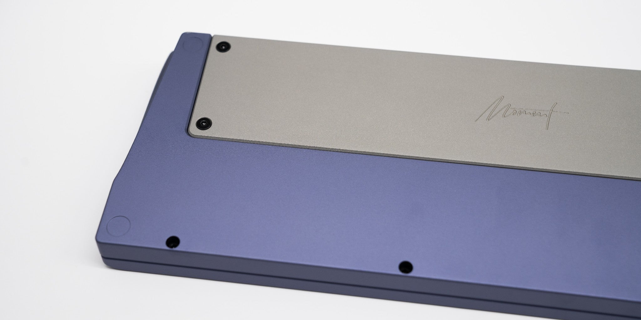 Designed by jjw, Moment is a 60% half-gasket mount keyboard featuring a fluid curved side profile, sandblasted stainless steel weight, and a soft typing feel.