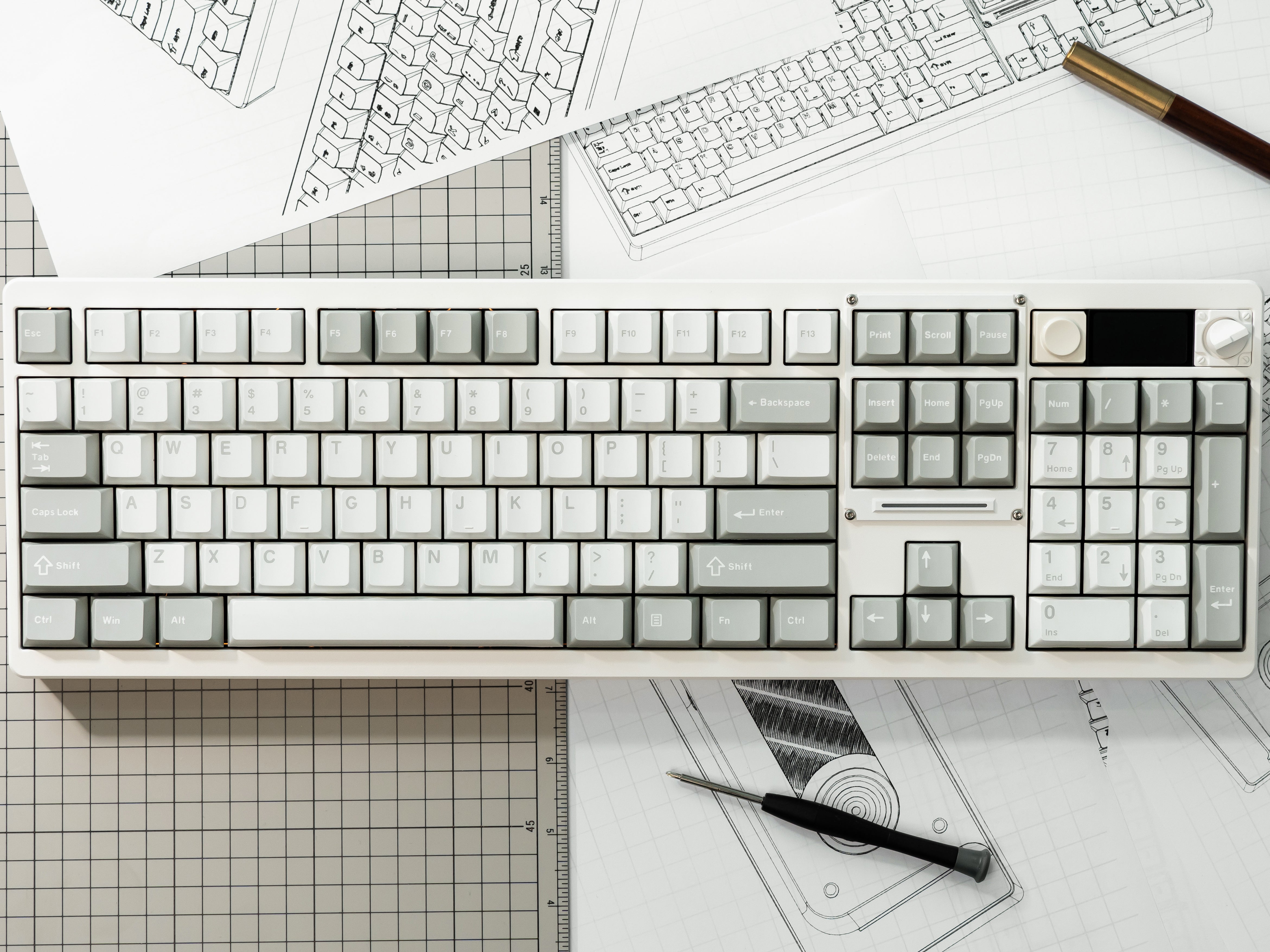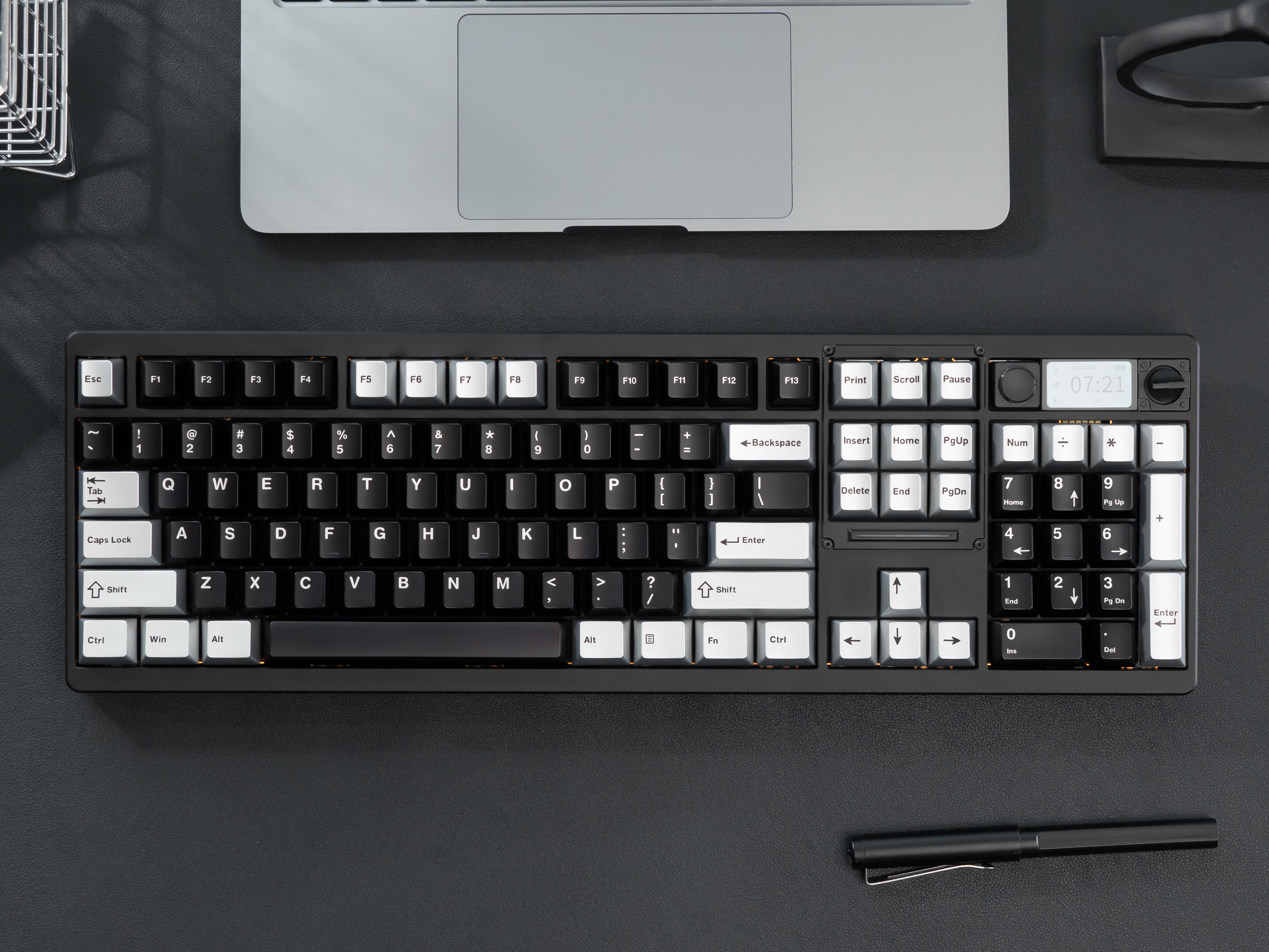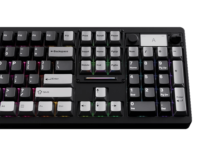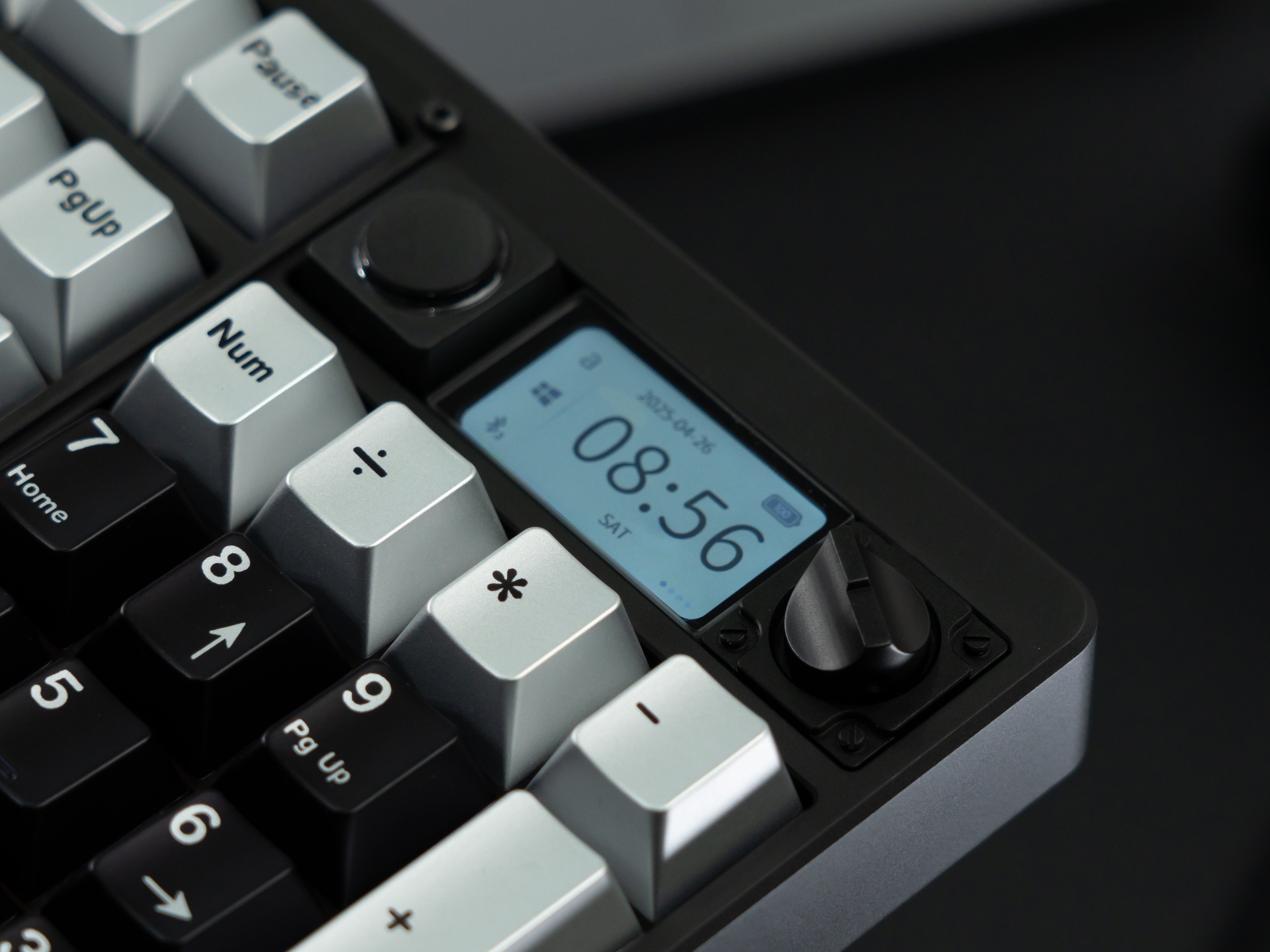 The ChilKey ND104 is a full size pre-built keyboard featuring a knob, LED screen, PBT keycaps, and vivid RGB!