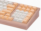 Cream colored alphas and peach mods are accented by bold orange for a delectable looking keyset! Also included are several novelty keycaps for your Esc Key, F-Row, Enter Key, and more! The kit even includes split spacebars, a second 'B' for all the Alice-style keyboards!