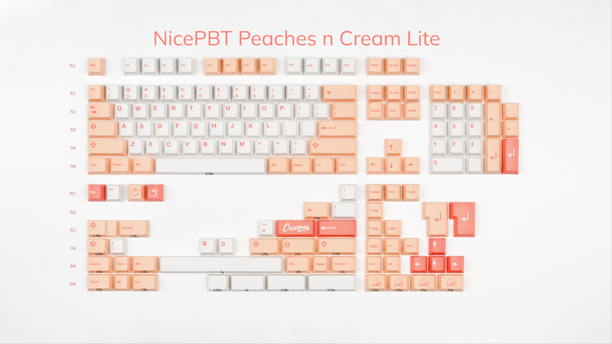 Designed by Rensuya (designer of GMK Peaches n Cream Lite), this set consists of Cherry Profile, Dye-sublimated PBT keycaps.