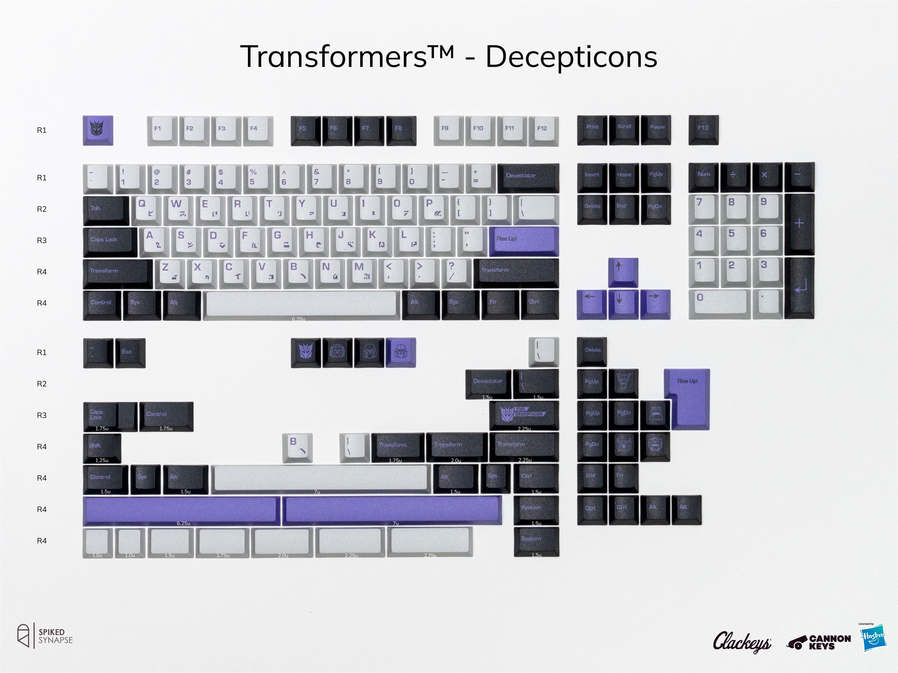 The battle for supremacy rages on! In collaboration with Clackeys, NicePBT Transformers™ is available in two colorways - Autobots and Decepticons. These Cherry Profile, Dye-sublimated PBT keycaps are officially licensed and include themed novelties and Cybertronian sublegends. Which side will you choose?