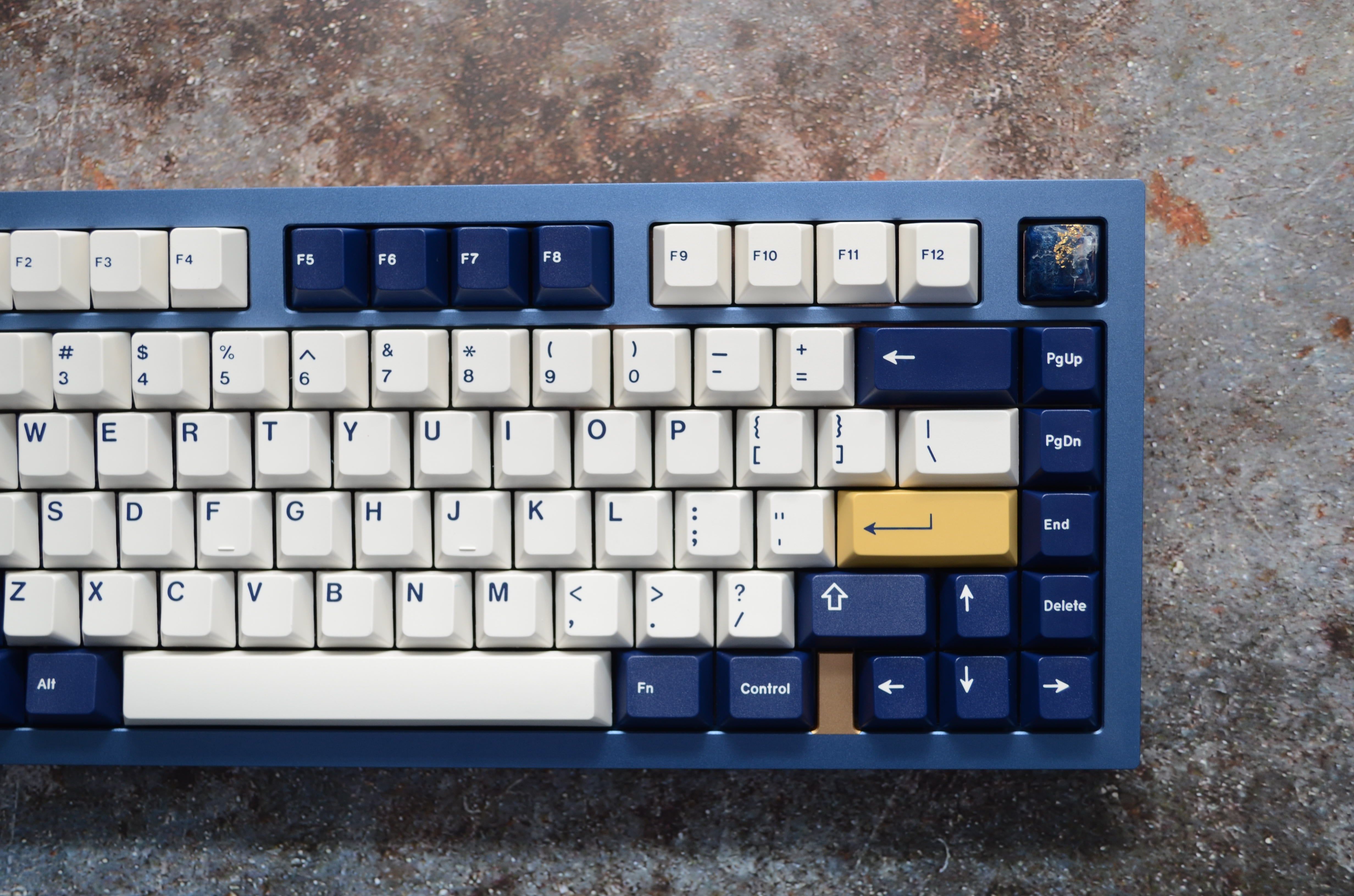 For this release, we're mixing it up - these are aluminum cases, but are two tone. Each keyboard comes with a top in one color, and a bottom and accent blocker in another color. Colors are listed as Top/Bottom.