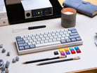 Based on old SGI Granite keyboards, Matt3o took the inspiration and added some RGB accents and basic ergo support. 11 years, and several successful runs of Granite later, Matt3o has given us the blessing to bring his now classic Granite colorway to his new keycap profile- PBS.