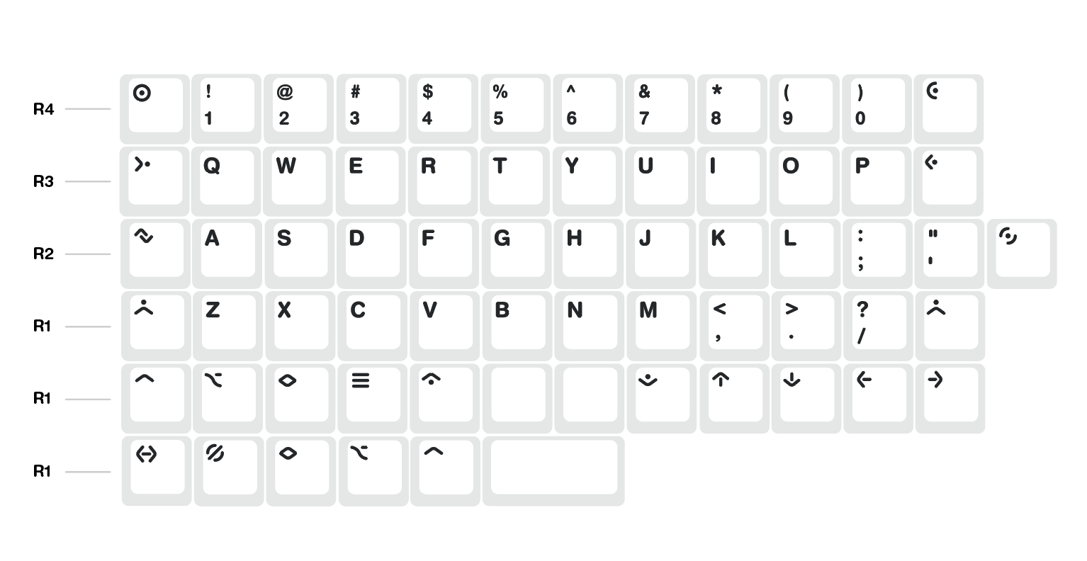 OCM designed some symbolic legends so that any ortholinear keyboard user could use this set without worrying about having the "proper" legends. They're symbols! They're abstract and you can assign your own meaning to them.
