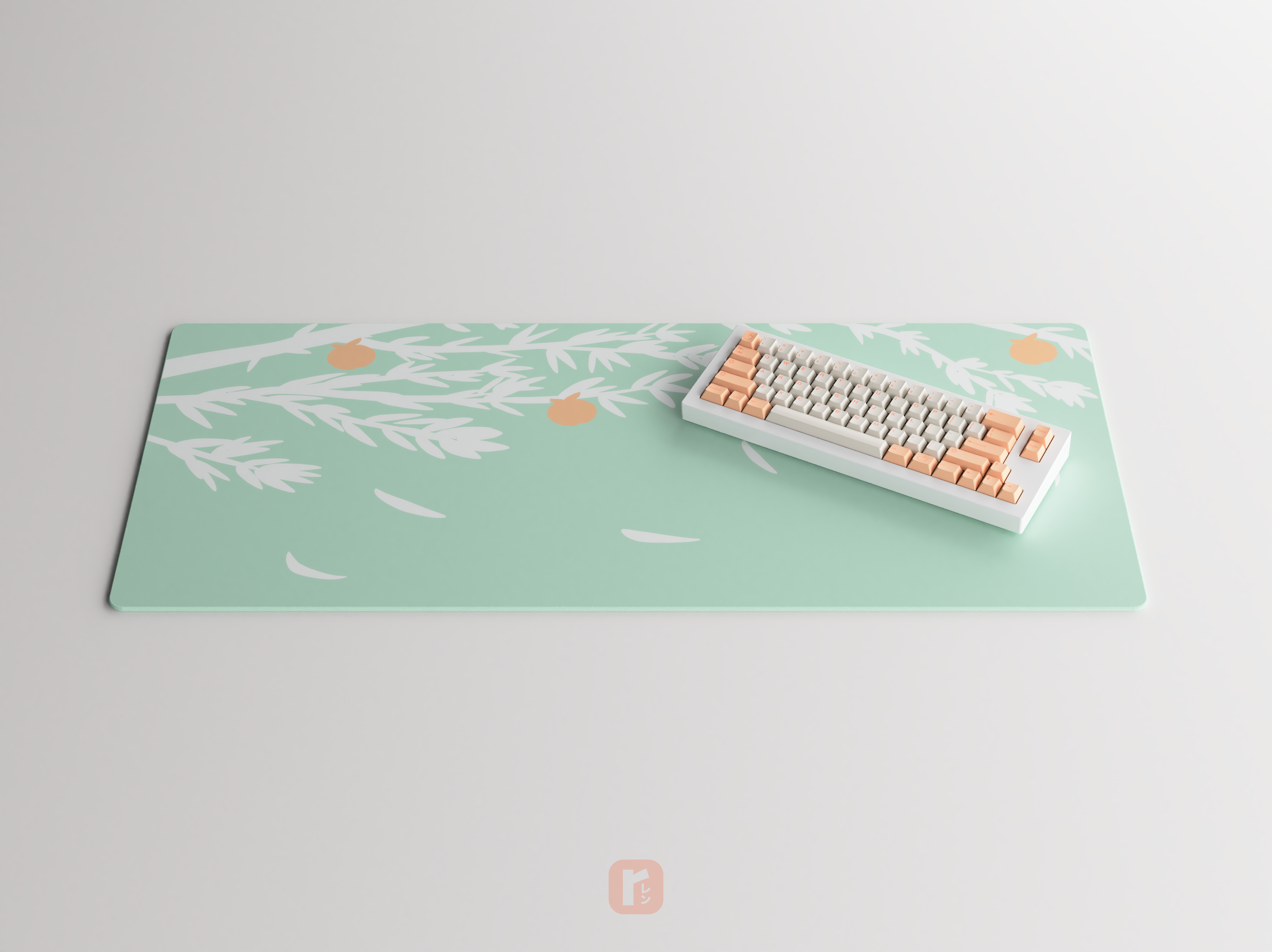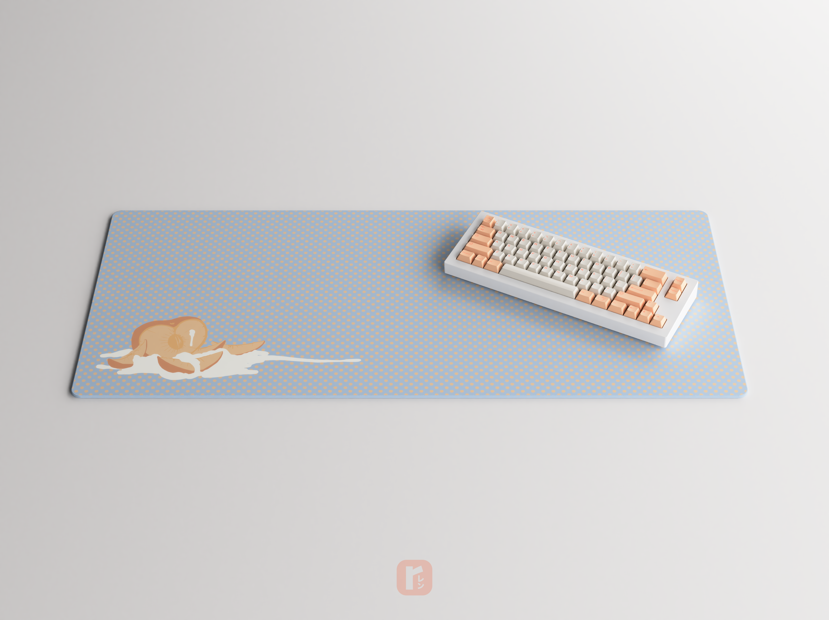 The perfect complements for the GMK Peaches n Cream keyset, these two deskmats were designed by Rensuya and Hisui Hyena.