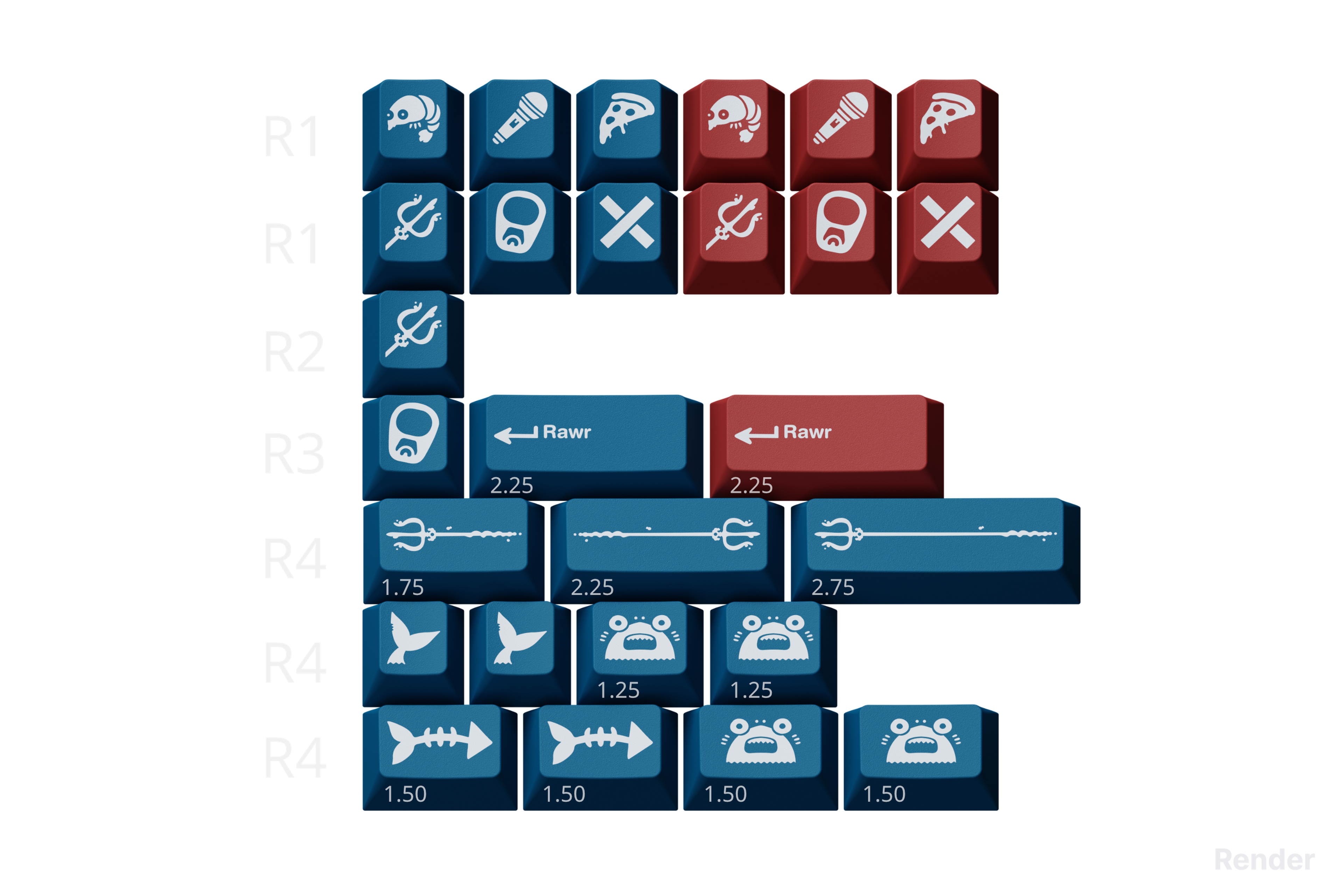This very serious shark themed GMK keyset is designed by Agilr and features two base kits: one with basic Latin alphas, and another for those with a more refined palate. Swimsuit not included.