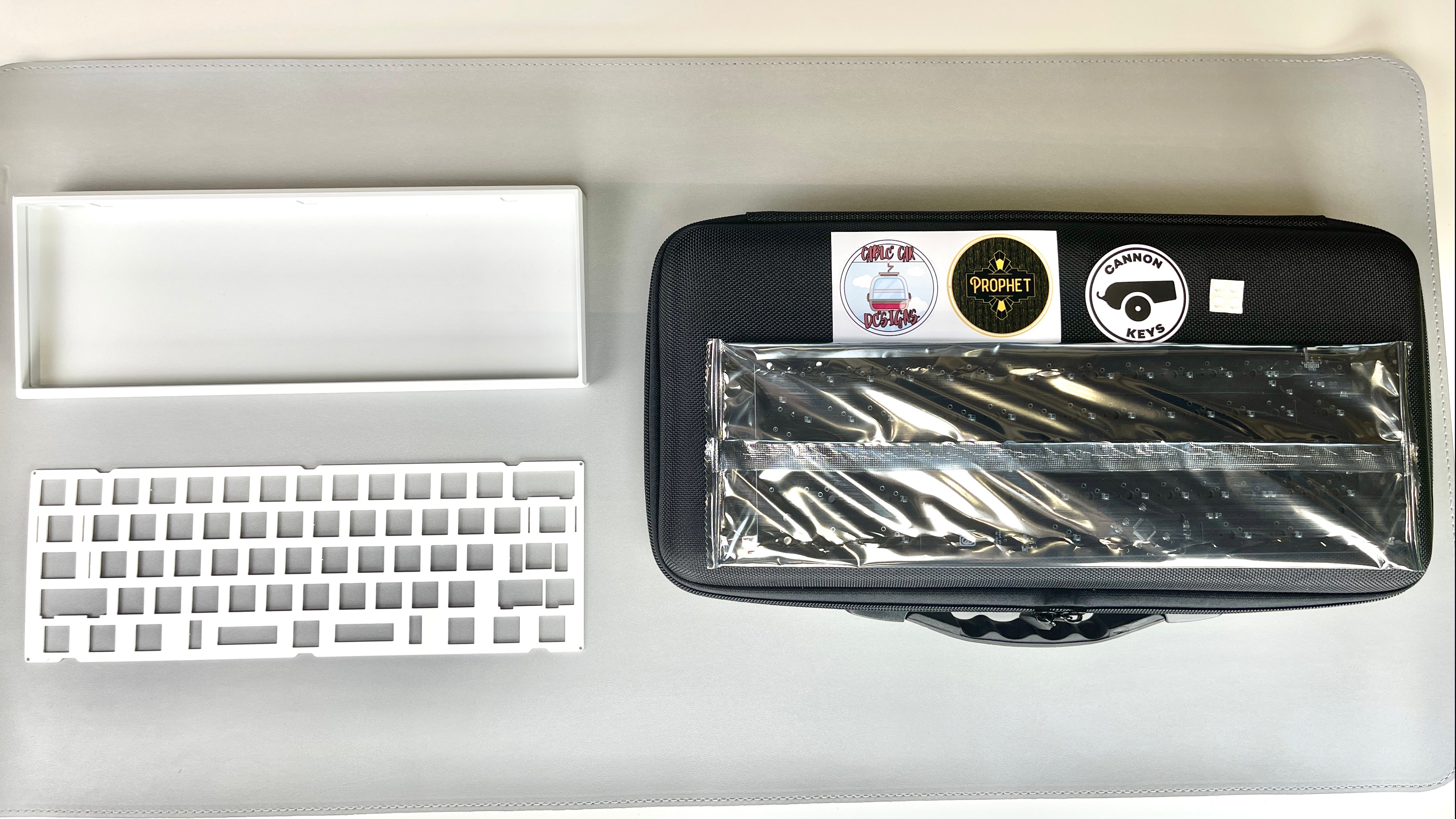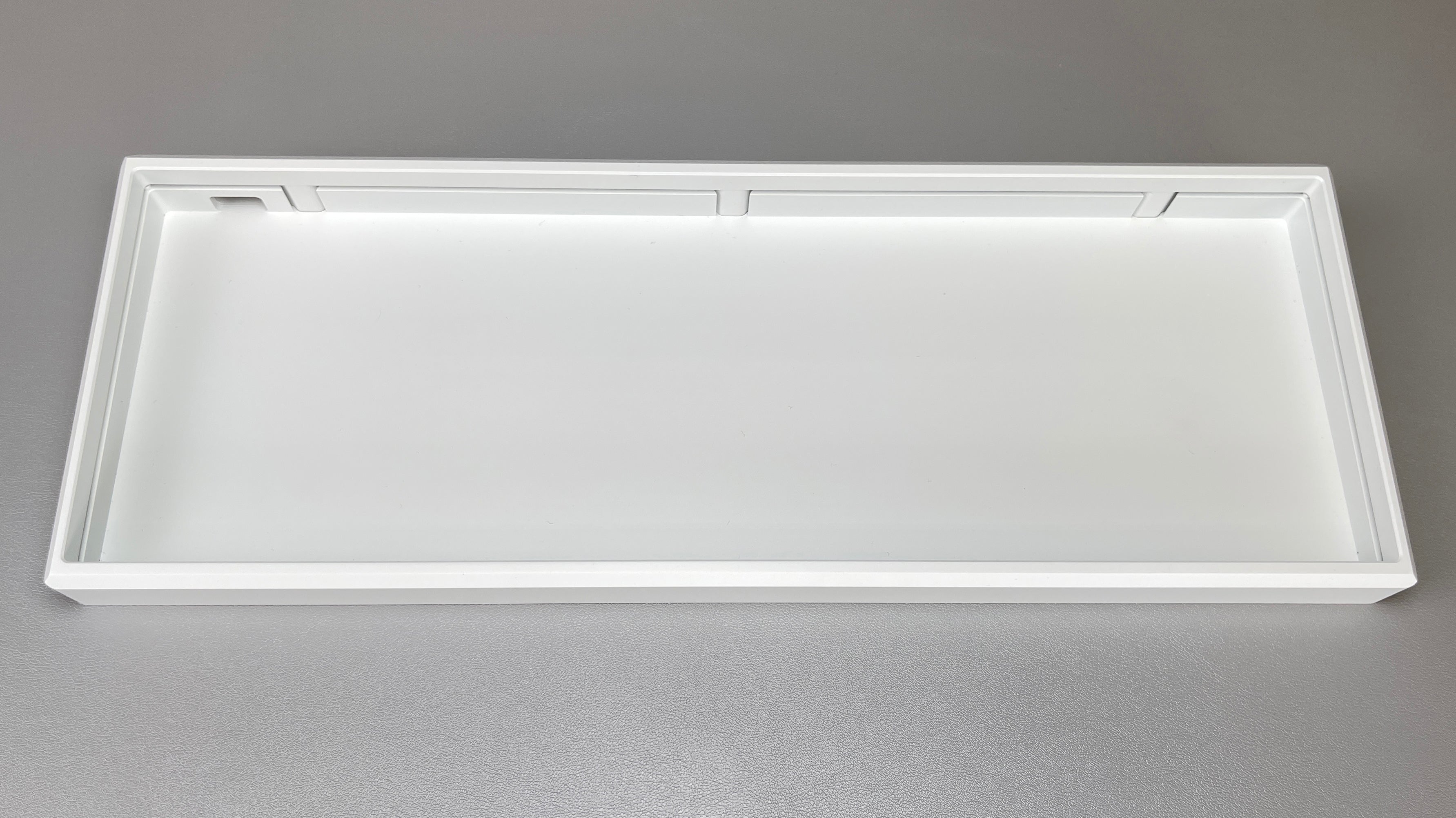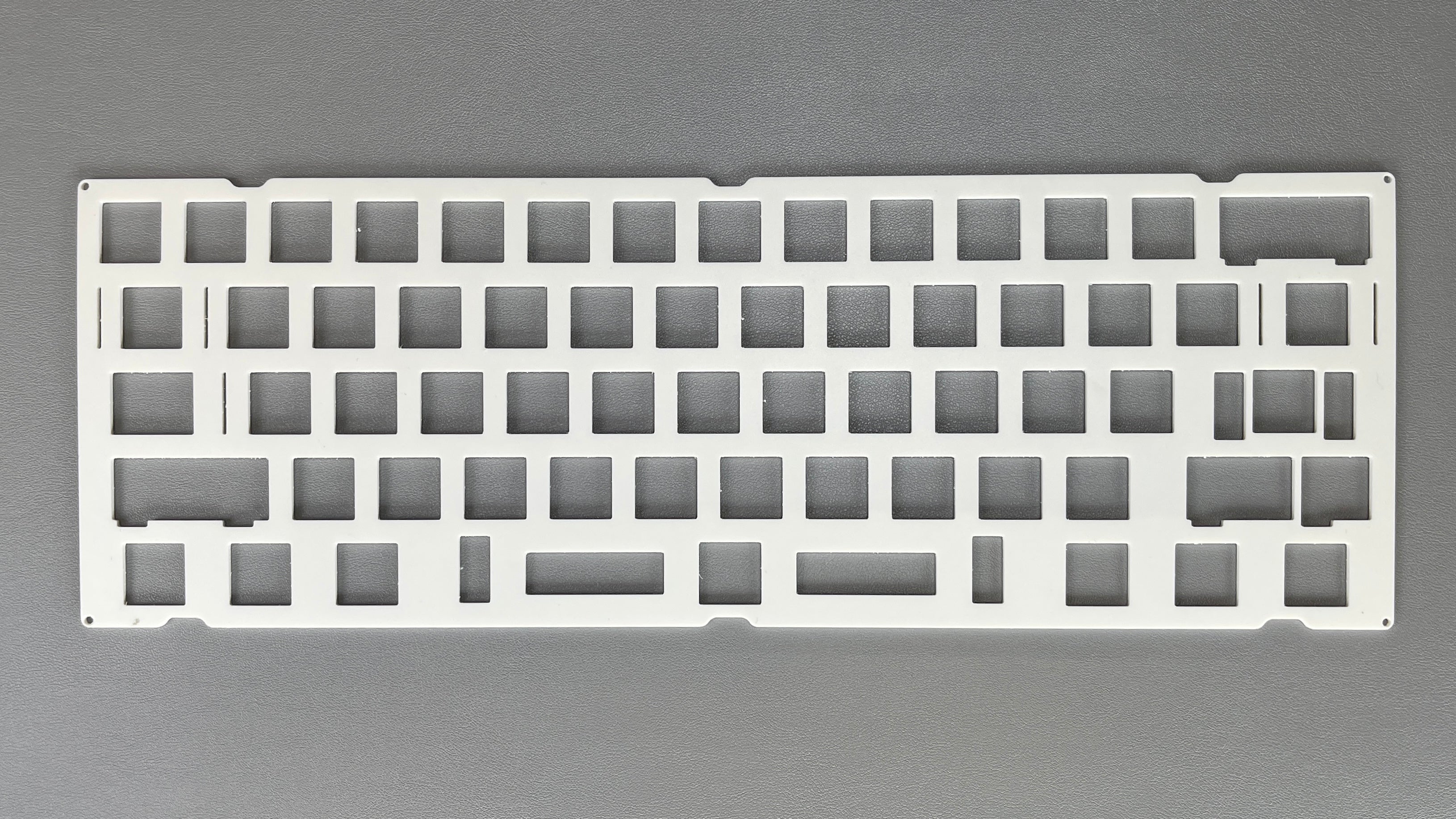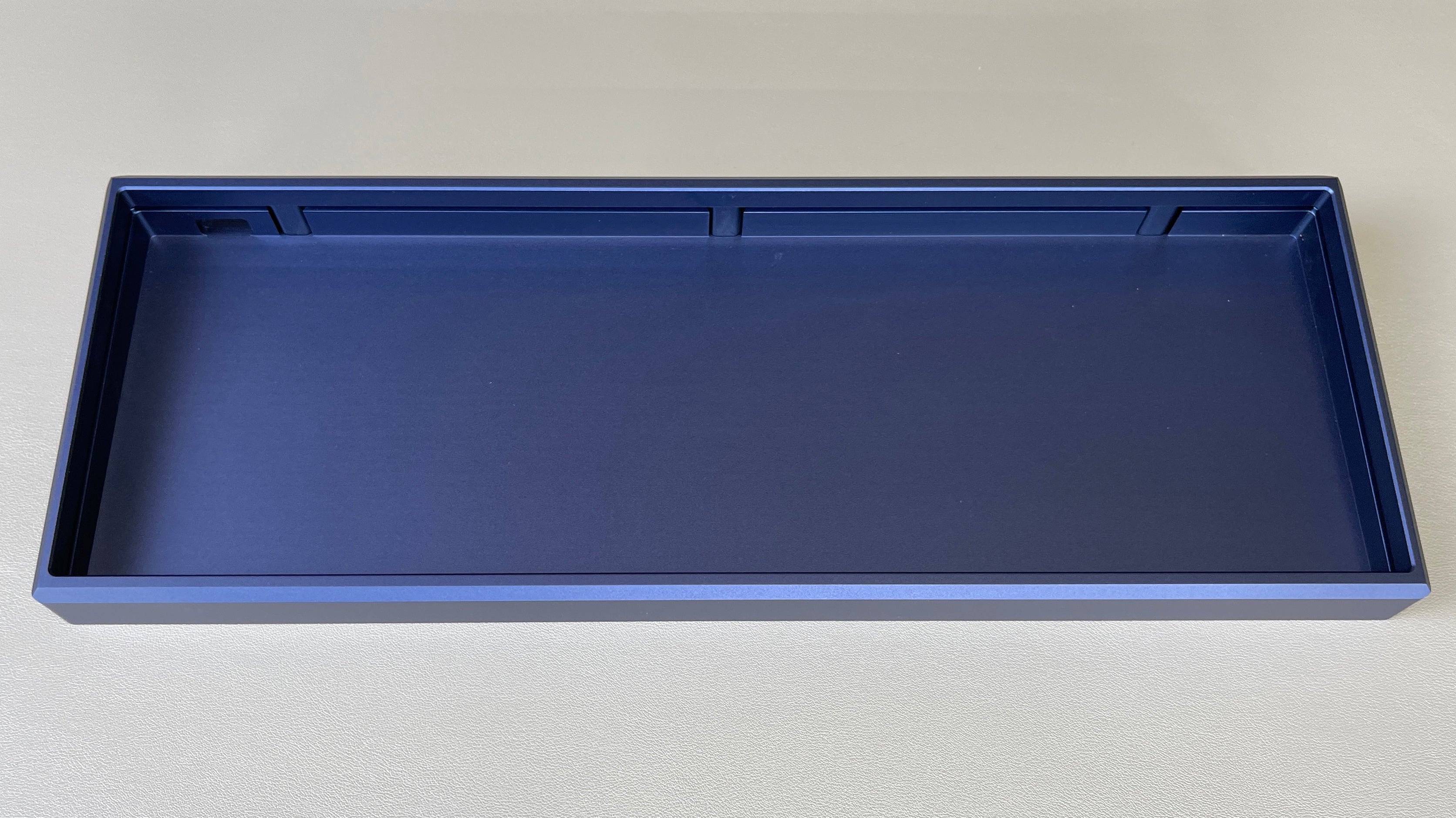 - There is no pressure from the top half of the case on the plate. There are 4 pins in the corners of the base that hold the plate in place and it rests on the lip of the base. The theory is that the lack of downward pressure allows the plate more freedom of movement towards the center whilst still retaining an even pressure around the edge of the board