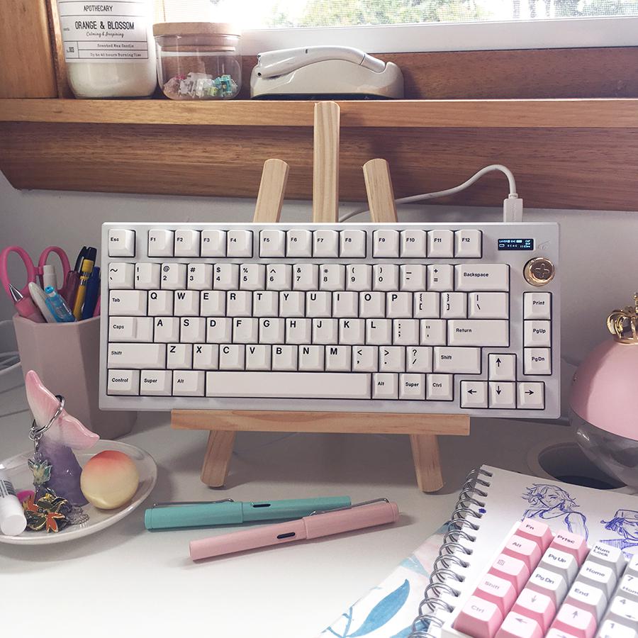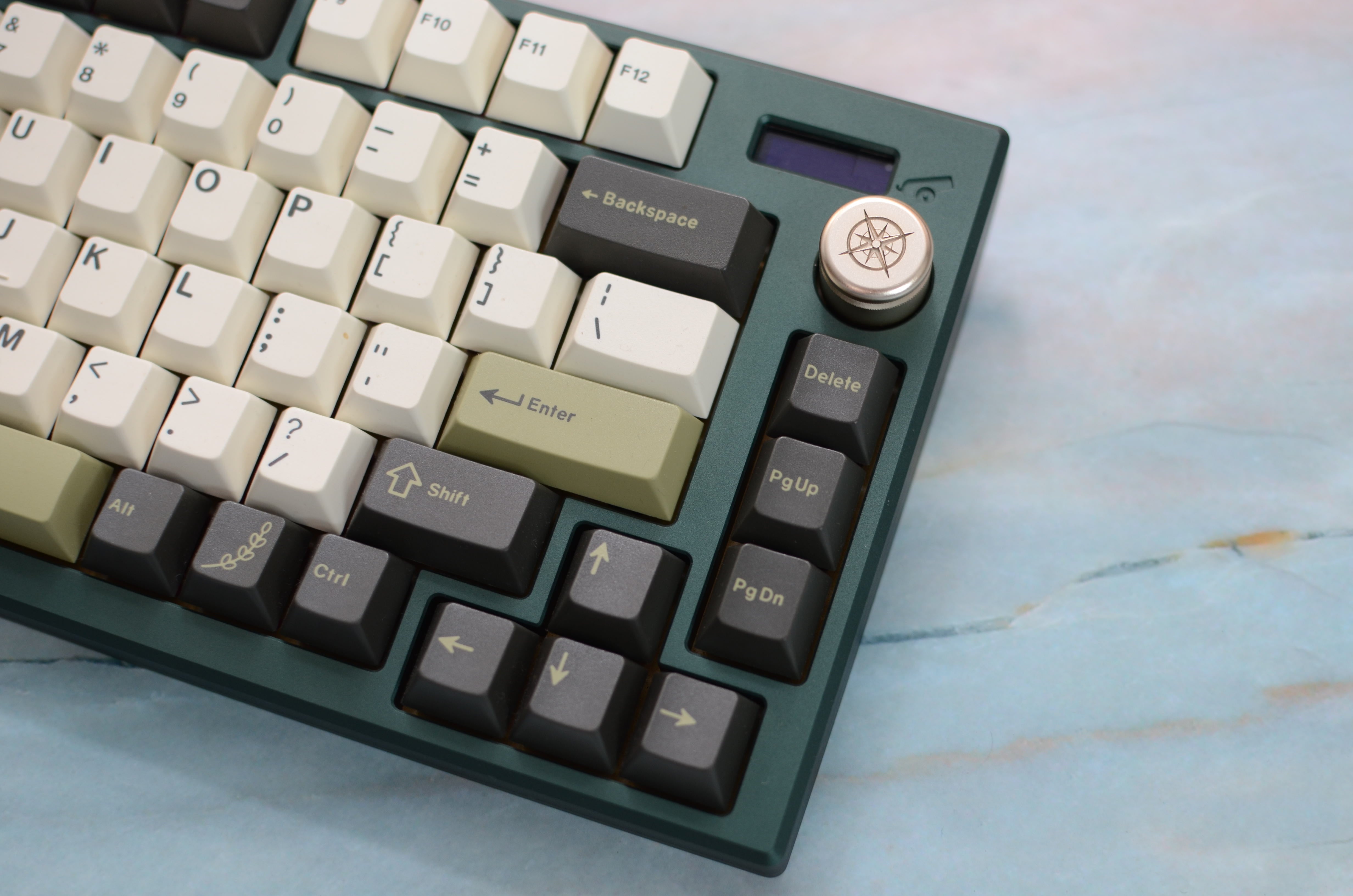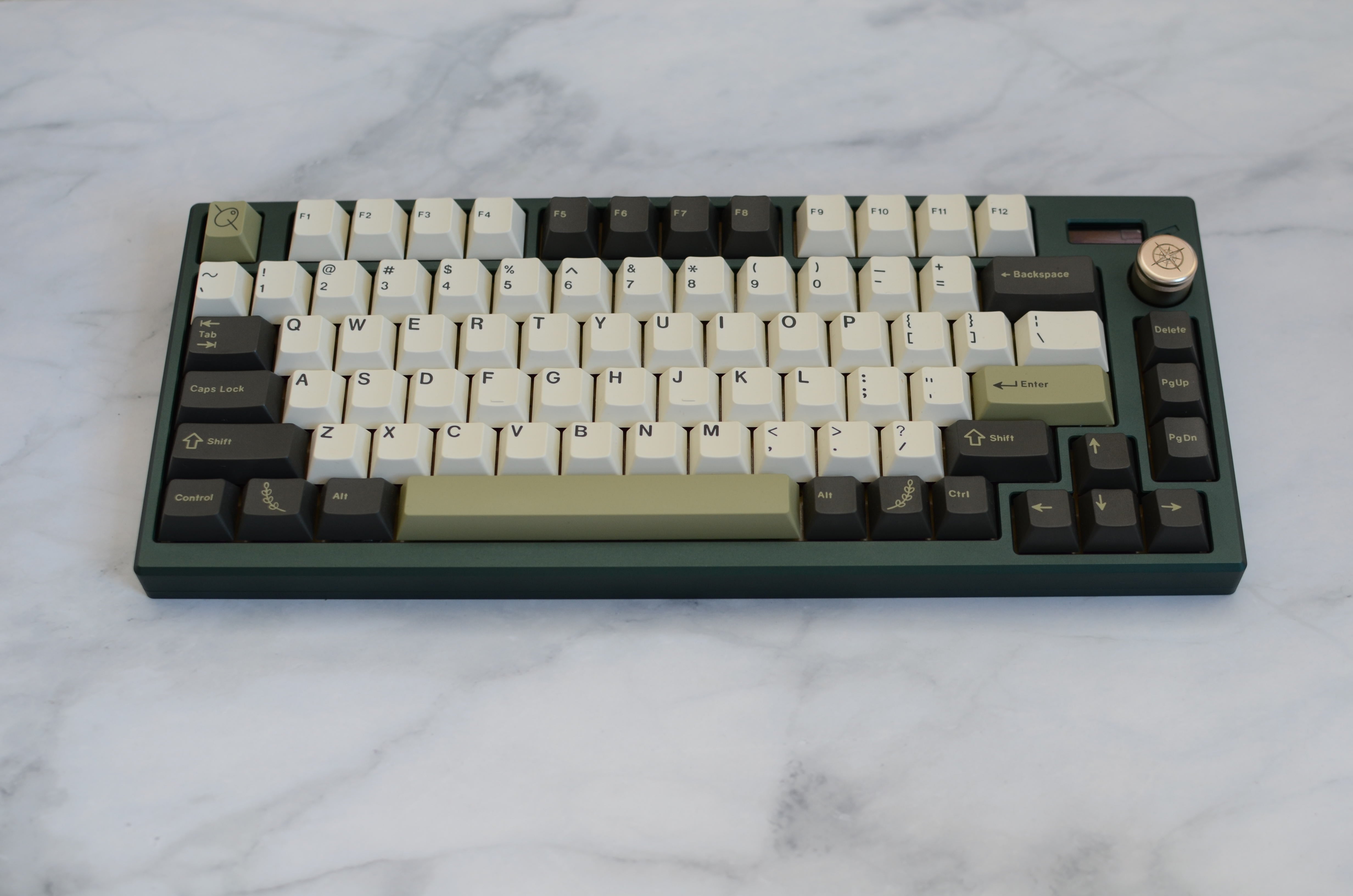 The Satisfaction 75 is a 75% keyboard featuring a rotary encoder (knob), and an OLED screen. The design was inspired by Pirate Captain Henry Morgan's flagship vessel the "Satisfaction". The curve in the back of the case is reminiscent of a pirate ship.