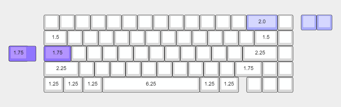 • 3x2u + 1x7u or 1x6.25u stabilizers