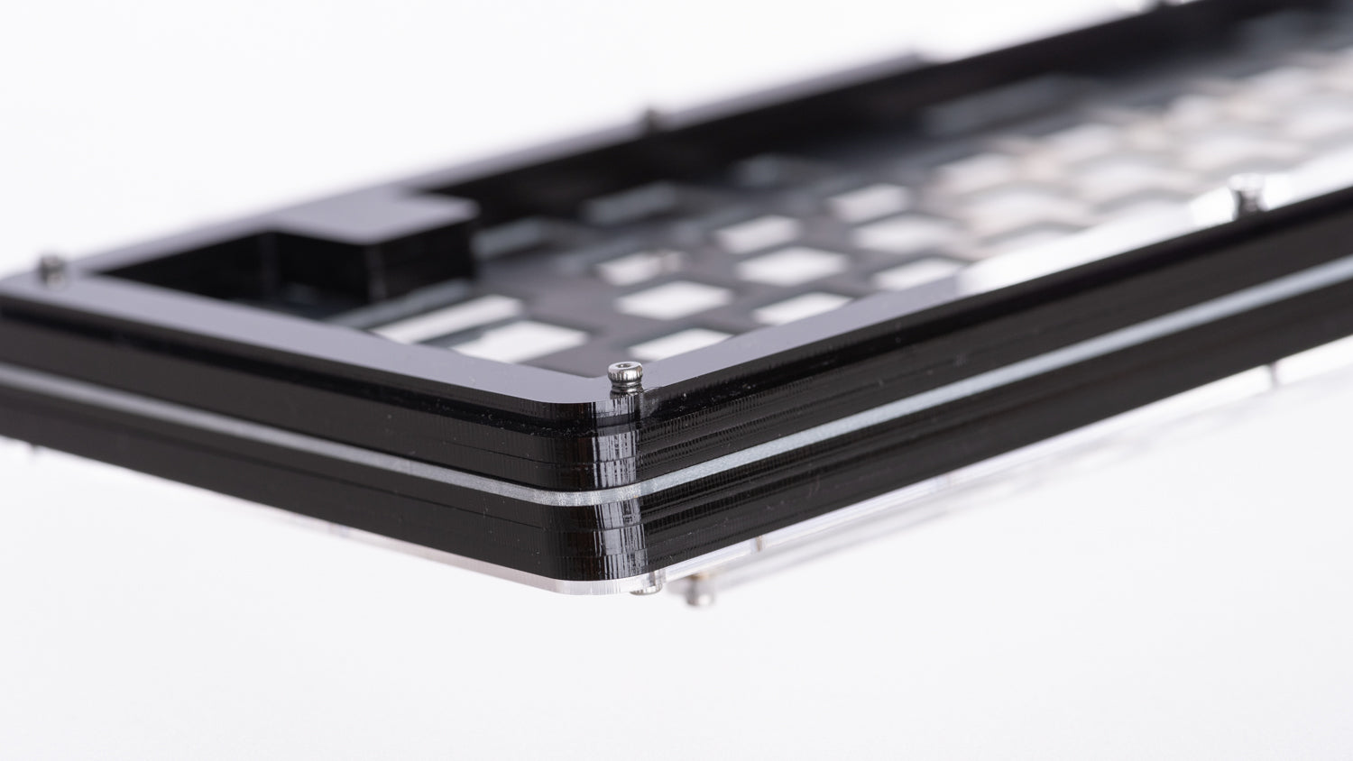 The Stacked60 keyboard kit in our Stacked Series of in stock keyboards. Using layers of acrylic, these keyboards offer both a unique sound profile and aesthetic in a fun to build package!