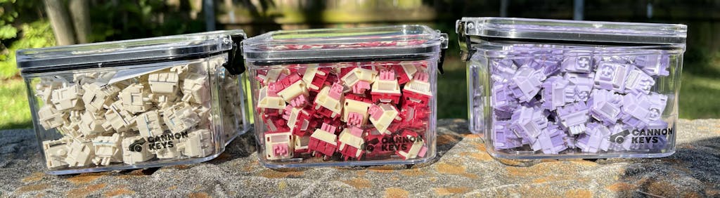 Available in two sizes, our switch containers are made from clear plastic with a latching lid. Perfect for switches, keycaps, or whatever else you have laying around! The branding is a removeable sticker that can be taken off should you wish to not have it there.