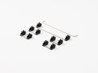TX Plate Stabilizers are premium plate mount stabilizers that utilize a patented doubleshot stem. The stem contains a POM outside, and TPU + POM plastic on the inside. This combination of plastics on the inside help reduce wire rattle and unwanted stabilizer noises.