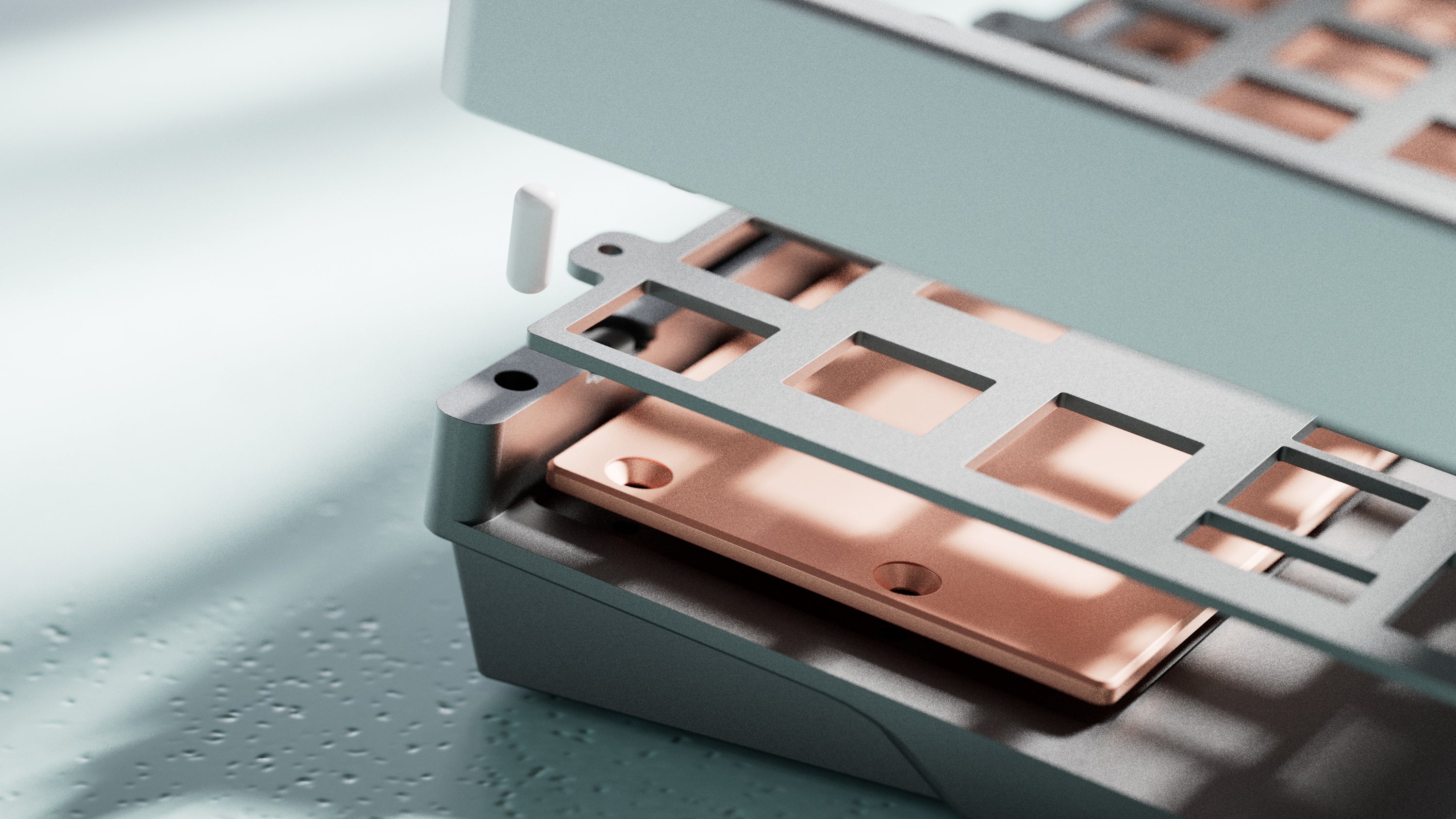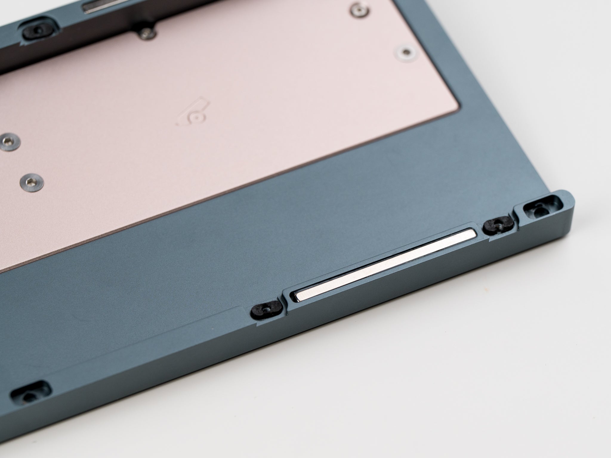 VIDA uses a unique version of bottom mount that utilizes poron dampeners and nylon alignment pins. The plate screws into the bottom case, and the top case is connected to the bottom through integrated magnets that are automatically aligned thanks to the alignment pins.