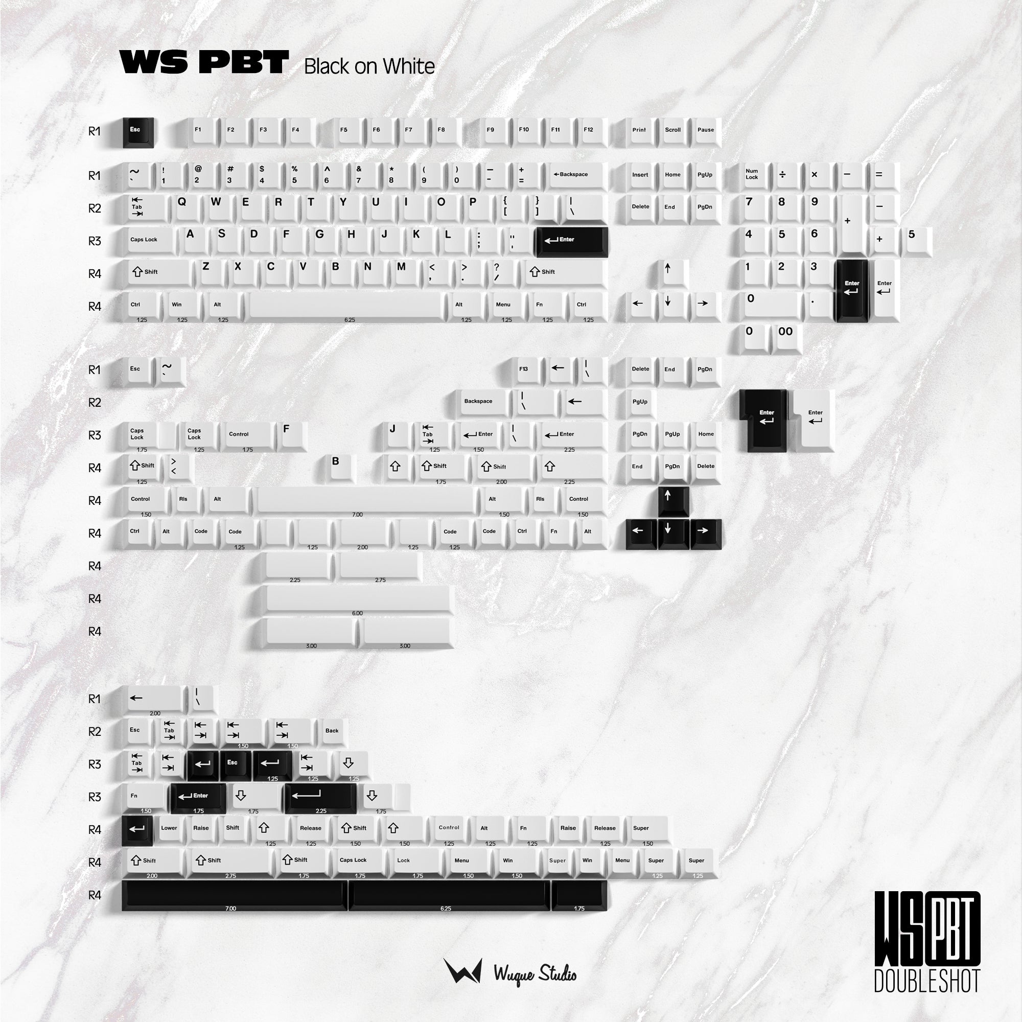 WS BoW is a doubleshot PBT keycap set produced by Wuque Studio. The crisp doubleshot legends and versatile black on white colorway make this a fantastic addition to any collection.