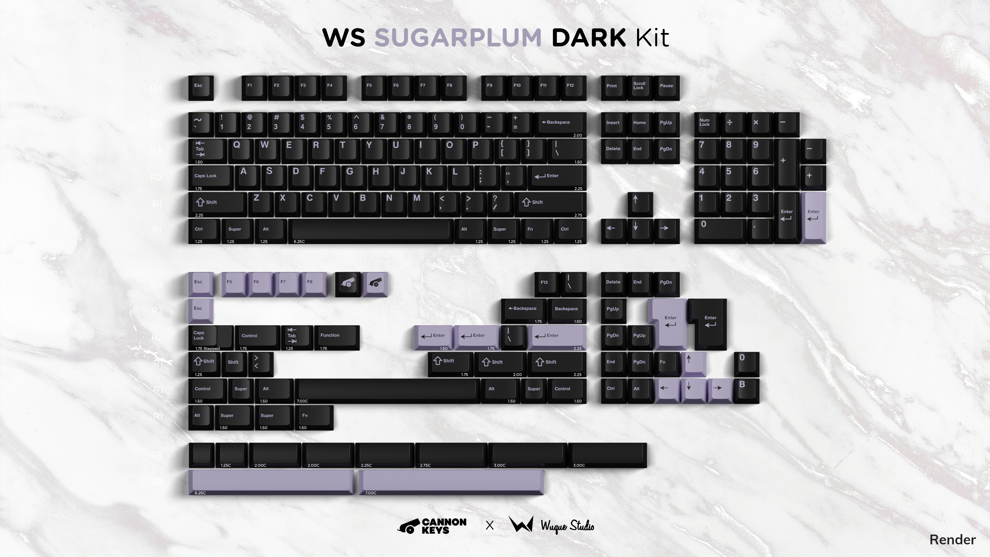 Designed by CannonKeys, WS Sugarplum Dark is a new keycap set utilizing doubleshot PBT. Crisp legends and vibrant colors finally coming together with the durability of PBT to create the best of both worlds!
