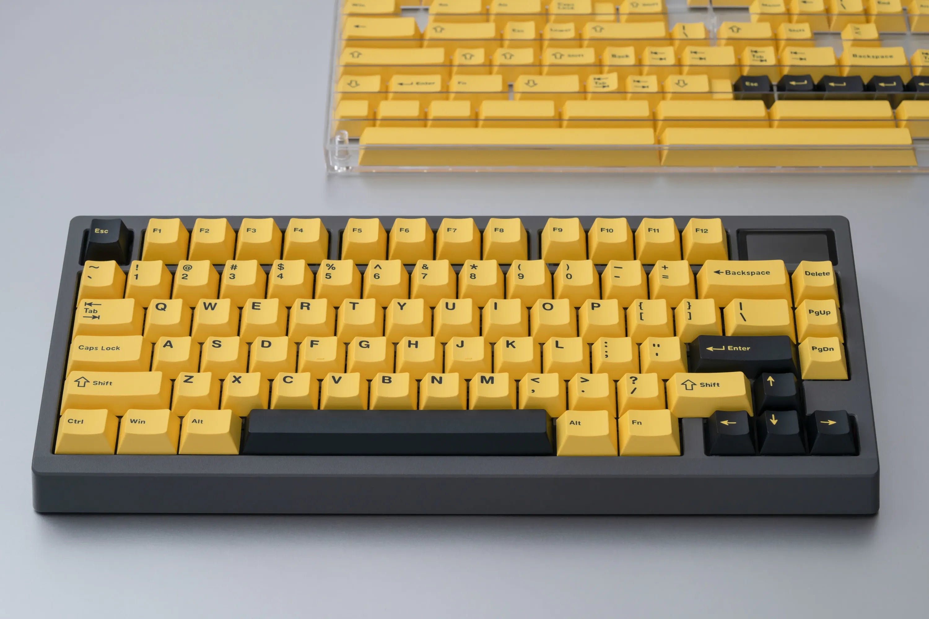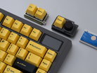 WS Yellow is a doubleshot PBT keycap set produced by Wuque Studio. The crisp doubleshot legends and stunning black on yellow colorway make this a fantastic addition to any collection. Several accent keys are also included. The singular Base Kit is extremely robust, offering split spacebars, Terminal ISO support, and tons of 40's support!