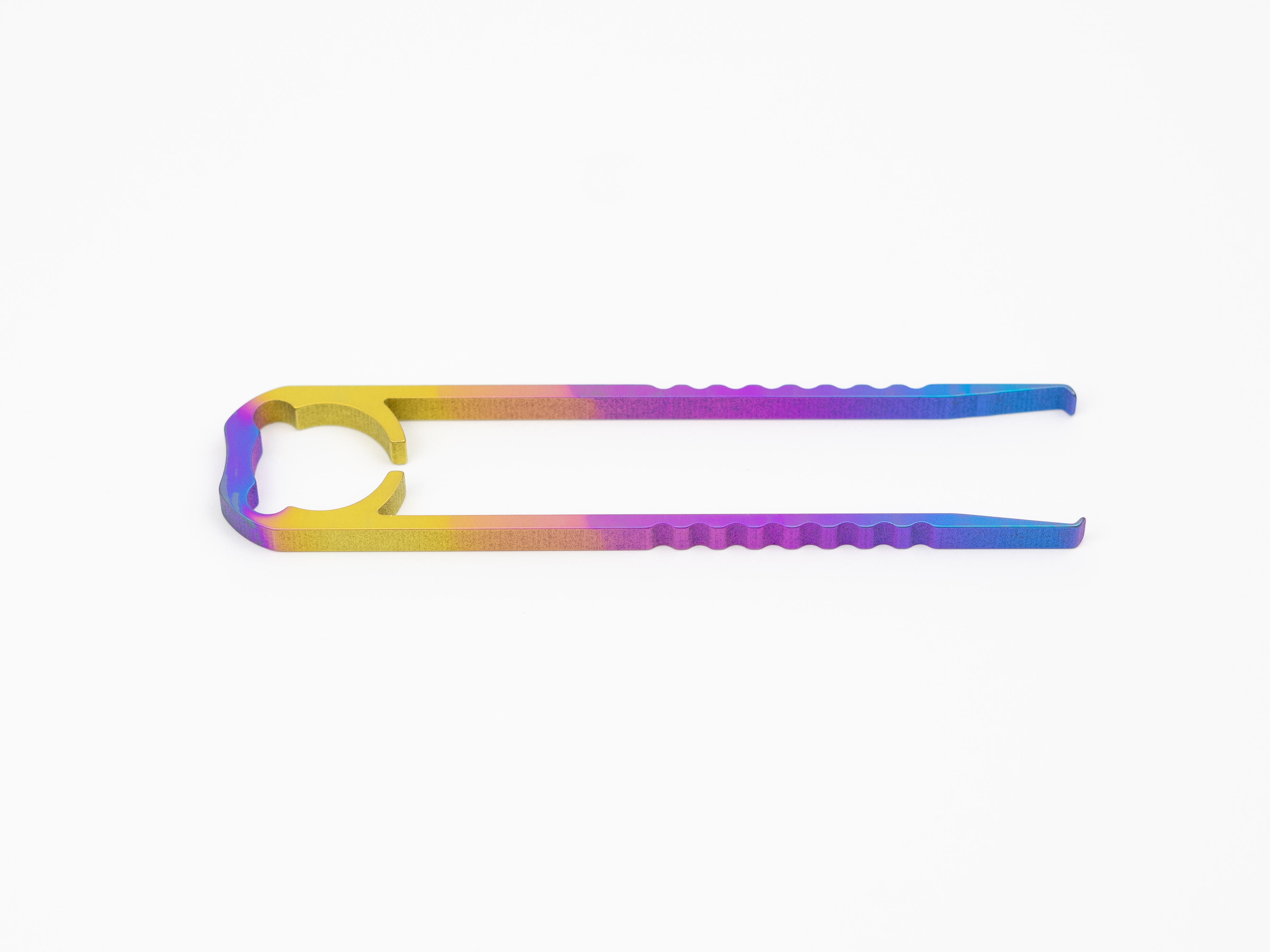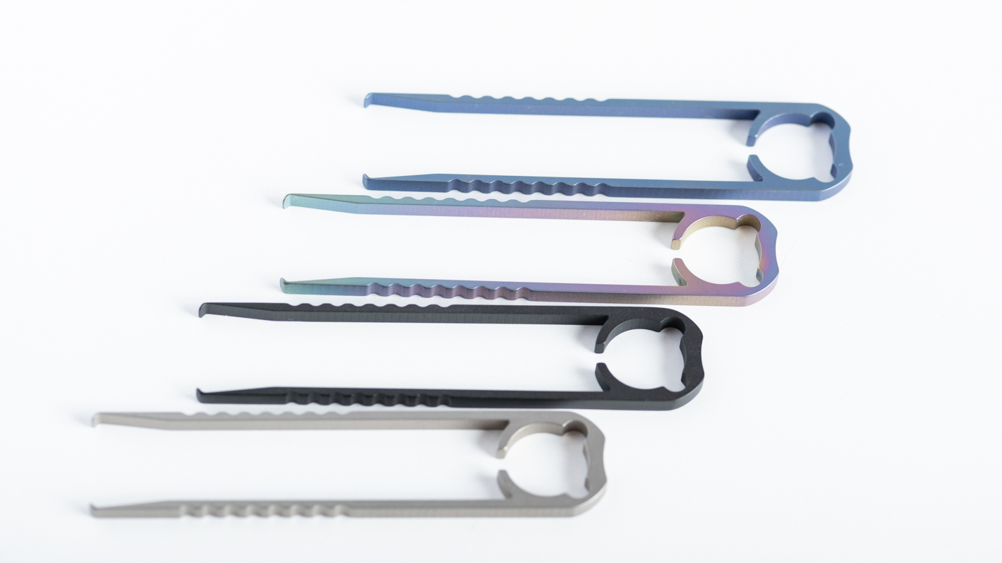 This sleek tool from is the latest from Wuque Studio. Available in Titanium Silver, Titanium Blue, Black, and Prism. Due to the anodization process of the Prism puller, color variations are common, and each one is slightly different.